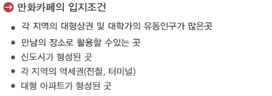 상권이 밀집지역에는 만화휴게실에서 한단계 발전한 만화카페를 운영해볼